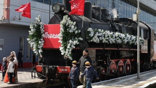 Поезд «Победа» начал праздничный тур 3 апреля со станции Махачкала. Сегодня, 4 апреля, поезд сделал остановку в чеченском Гудермесе, а 5 апреля его встретят на станции Назрань в Ингушетии.
