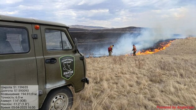 Возгорание сухой травы произошло в минувшие выходные, 5 апреля. Старший госинспектор Алексей Каширский заметил очаги пламени примерно в шести километрах к северо-западу от территории «Айтуарская степь».