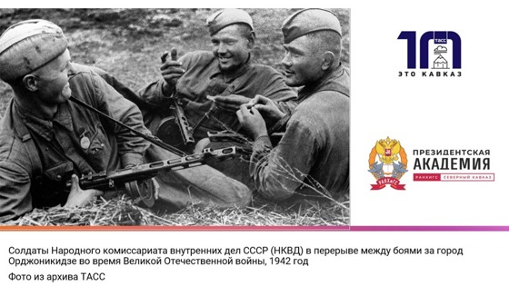 В рамках мероприятия в Северо-Кавказском институте-филиале РАНХиГС — Президентской академии на Северном Кавказе — провели открытую лекцию, где рассказали о работе ученых института в деле изучения Битвы за Кавказ.