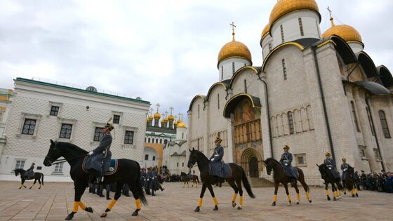 На Соборной площади Кремля 19 апреля пройдет первая в новом сезоне церемония развода пеших и конных караулов Президентского полка, сообщает пресс-служба ФСО РФ