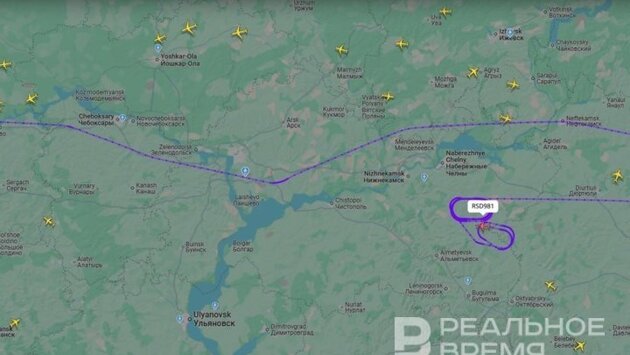 Судя по данным сервиса FlightRadar, в районе Альметьевска летает кругами Ту-214.