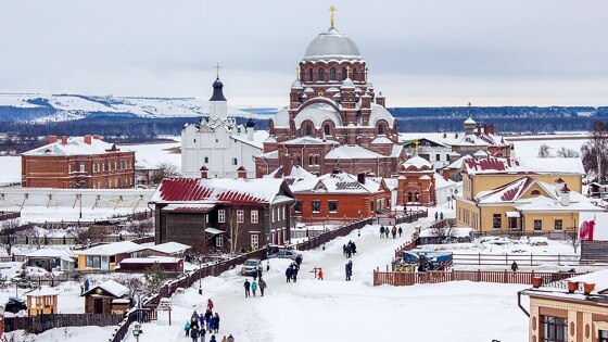 Остров-град Свияжск расположен к западу от Казани в устье реки Свияга. Это первый православный город в Среднем Поволжье - он основан в 1551 году царем Иваном Грозным. В Свияжске находится Успенский мужской монастырь и около десятка православных храмов. Успенский собор и монастырь в 2017 году были внесены в список всемирного наследия ЮНЕСКО.