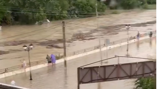 В результате мощных ливней, которые в последние часы идут на части Черноморского побережья края, произошло разрушение моста через реку Шапсухо в поселке Лермонтово.