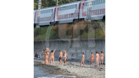 В сети распространился ролик, на котором несколько человек, держась за руки, вошли в море без одежды. На кадрах видно, как группа обнаженных мужчин и женщин поприветствовала проходящий поезд, а затем начала купаться, пишет "Газета.ru".