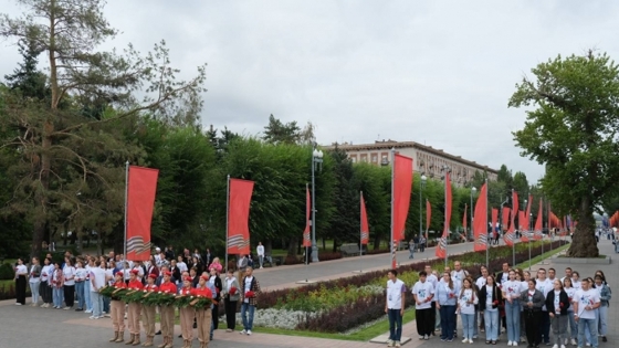 С флагами и транспарантами молодежь проследовала пешком по центру города-героя. Маршрут пролегал по Аллее Героев, оттуда – по улице Чуйкова до амфитеатра на набережной.