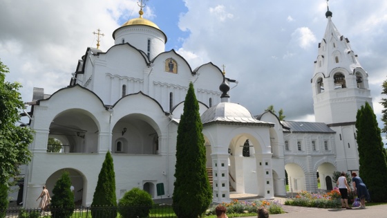 Главный храм монастыря - Спасо-Преображенский собор - был возведен в 1550-1560 гг. В XVII в. собор был расписан артелью художников под руководством знаменитого Гурия Никитина, крупнейшего иконописца того времени. Рядом с собором находится нарядная высокая звонница. Напротив звонницы располагается Успенская трапезная церковь - один из самых ранних образцов церковных сооружений шатрового типа (построена в 1525 г.)