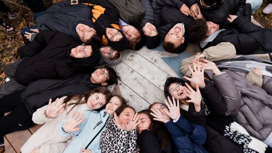 Одна из станций-чувств экотропы — осязание, или "Босоногая тропа". На ней можно пройтись по камням, натуральному лесному дереву босиком. В силу погодных условий школьники не решились опробовать. Но с удовольствием испытали станцию "Смени угол обзора", где можно прилечь на деревянную поверхность и отдохнуть, устремив взгляд в небо и к кронам деревьев.