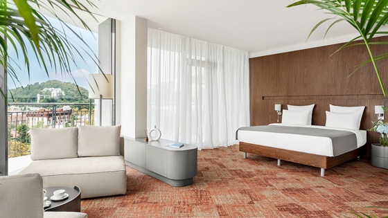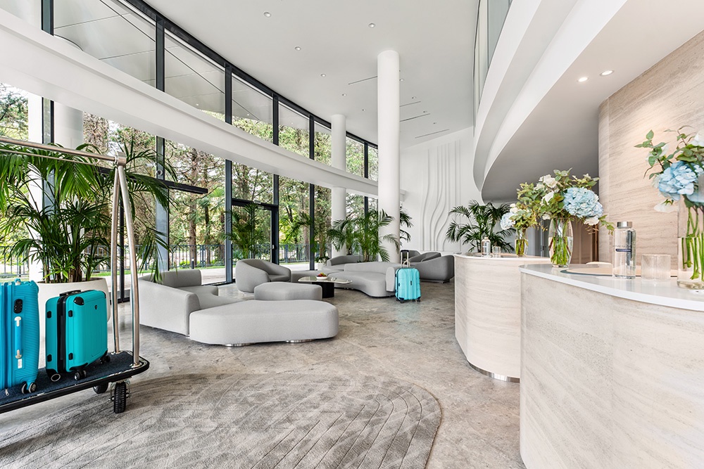 Футуристический облик здания с плавными линиями и каскадными балконами - современная интерпретация древних террасных ландшафтов Хосты. Бионическая архитектура органично вписана в природный рельеф: здание следует естественным изгибам местности. Маршруты для терренкура и просторный атриум с зимним садом, в котором насчитывается 20 видов тропических растений, усиливают эффект погружения в местную природу.