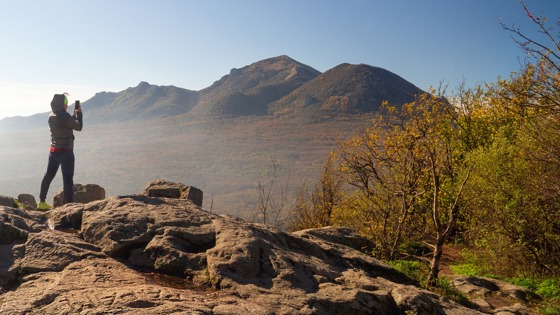 Со смотровой площадки на вершине горы Железной, подъем на которую занимает около 40 минут, открываются впечатляющие виды на Железноводск и гору Бештау, а в ясную погоду — даже на Эльбрус. А еще здесь есть поросшая мхом скала с выбитым в камне женским лицом с развевающимися волосами.