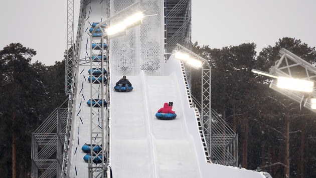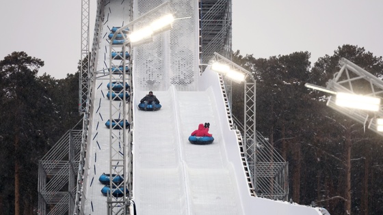 У горки два спуска. На ледяную трассу нанесено специальное покрытие, которое позволяет сделать катание более безопасным. На вершину можно подняться налегке - подъем тюбингов для катания производится автоматически.