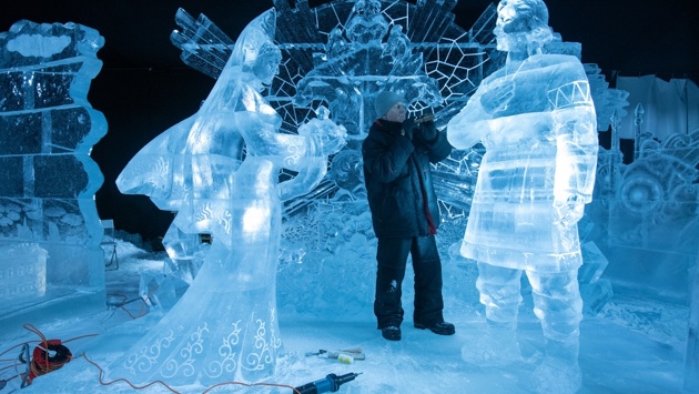 Специально для фестиваля у Нарышкина бастиона возвели большой павильон. С помощью пяти холодильных агрегатов здесь постоянно поддерживается мороз - минус три - восемь градусов: такая температура позволяет льду не таять, а людям - не мерзнуть.