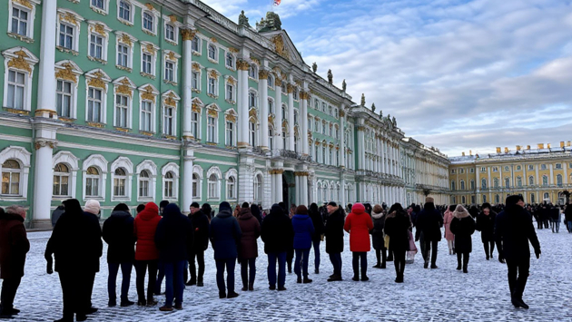 Огромная очередь выстроилась к Эрмитажу в Петербурге
