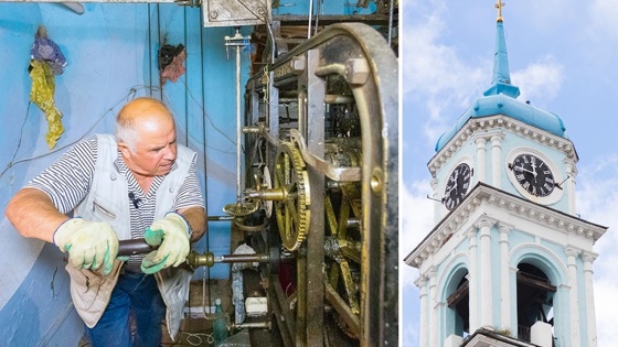 Чем знаменита Кашира? Православные вспомнят святыни - Никитский монастырь, рядом с которым находится святой источник Пантелеймона Целителя, или Введенский храм, на самом верхнем ярусе которого 126 лет назад были установлены... часы. И они до сих пор ходят - во многом благодаря мастеру-часовщику, обслуживающему старые механизмы. Человеку 78 лет, а он дважды в неделю поднимается на самую вершину храма, чтобы стрелки городской достопримечательности продолжали работать.
