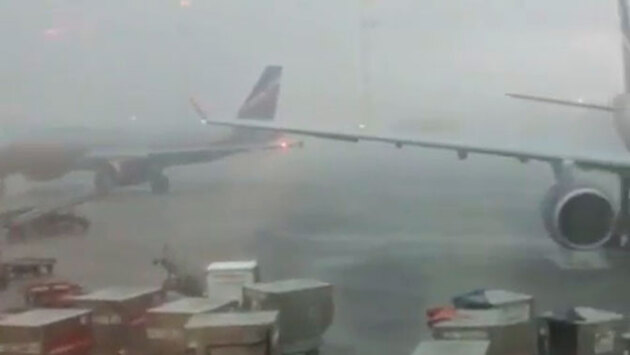 Пассажирский самолет готовится к вылету в ураган: видео