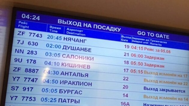 По расписанию вылет должен был состояться в 15.25 в субботу 5 августа. Потом рейс перенесли на 20.45, затем его переносили каждый час.