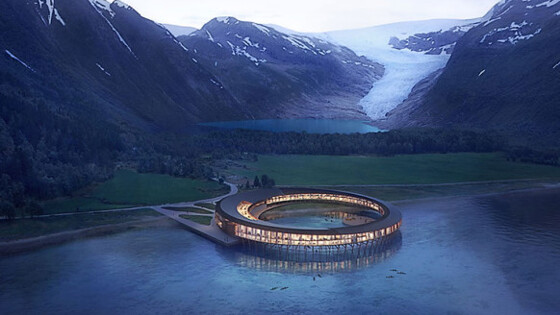 Компания Snøhetta объявила о планах по строительству в Норвегии отеля Svart. Он будет находиться за полярным кругом и, как предполагается, за 60 лет работы сможет произвести больше энергии, чем потребуется на его строительство, эксплуатацию и снос. Источник: Design Boom Возле ледника Свартисен (Svartisen) на севере Норвегии появится необычный отель Swart. Это слово, означающее «черный» или «синий», используется при описании глубокого цвета льда по сравнению с ярким белым снегом. Здание отеля имеет форму кольца, что открывает панорамный вид на горы и фьорды. Оно отлично вписано в ландшафт, не нарушая природную красоту и даже дополняя ее. Архитекторы из бюро Snøhetta учли опыт строительства традиционных норвежских рыбацких домиков на сваях fiskehjell и rorbu. Благодаря этому отель оказывает минимальное воздействие на почву и окружающую среду, а туристы получают возможность поплавать на лодках непосредственно под зданием. Также проект призван доказать, что в самом суровом климате могут быть возведены энергоемкие строения. Сверхсовременные материалы, из которых будет создан Swart, позволяют на 85% сократить ежегодное потребление энергии по сравнению с обычными гостиницами. Остальные 15% отель будет вырабатывать сам. Работая над проектом, специалисты в течение года изучали условия, в том числе подсчитывали объем отражения солнечных лучей. Благодаря этому была разработана конструкция солнечных батарей, способных наиболее эффективно генерировать электричество. Архитекторы подчеркивают, что долгие летние белые ночи позволяют аккумулировать даже больше энергии, чем это происходит на юге. Кроме того, выработкой энергии займутся геотермальные насосы. Отель стал частью программы Powerhouse, над которой работает несколько норвежских компаний. Чтобы соответствовать этому стандарту, здание должно за 60 лет компенсировать всю энергию, использованную при его строительстве, эксплуатации и утилизации отходов. Норвежская архитектурная компания Snøhetta, работающая над проектом отеля Svart, также разрабатывает проект первого в Европе подводного ресторана. Открытие необычного заведения питания, которое тоже будет располагаться на территории Норвегии, запланировано на 2019 год.