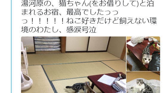 Небольшой японский отель, расположенный на термальном курорте Хаконэ, распродал номера на несколько месяцев вперед, благодаря необычной услуге: аренде «кота на час». Некоторое время при гостинице существовало «котокафе», где постояльцы за умеренную плату могли отдохнуть в компании домашних животных. Такая услуга стоила 1800 иен (около 950 рублей) и пользовалась хорошим спросом у традиционно расположенной к кошкам японской аудитории. Тогда у владельцев гостиницы появилась идея расширить бизнес и предложить клиентам возможность взять кота к себе в номер на определенное время. Даже для страны восходящего солнца, где существует множество компаний, занимающихся арендой домашних животных, такая услуга оказалась новой и необычной. «Я отправился в Хаконэ, чтобы отдохнуть после тяжелого апреля. Это было лучшее жилье, которое я только мог выбрать!» — написал довольный постоялец в своем Твиттере. Восторженный отзыв собрал более 140 тысяч лайков и превратил заведение в настоящую туристическую мекку. Из-за резко возросшего спроса в гостинице даже решили увеличить цены на проживание. Если раньше остановиться в кошачьем отеле можно было за 3000 иен (1600 рублей), то теперь его владельцы просят 4500 иен (2600 рублей), сообщает сайт Ассоциации туроператоров России. «Пожалуйста, отнеситесь с пониманием к тому, что у нас мало людей в штате. Июнь и июль уже полностью забронированы, мест нет, но еще остаются немного свободных комнат на август и сентябрь. И, пожалуйста, перестаньте звонить нам по ночам и рано утром!» — написано на сайте гостиницы. Коты помогают развивать туризм не только в Японии. Два года назад рыжего питомца по кличке Марай назначили пресс-секретарем Серпуховского историко-художественного музея.