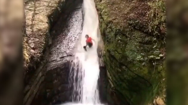 Горный аквапарк: туристы скатились по водопаду в Северной Осетии
