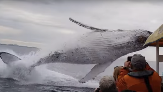Горбатый кит устроил настоящее шоу для туристов. Чумовое видео