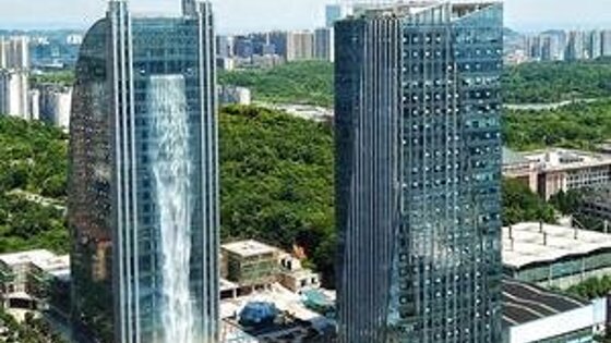Находится водопад на здании отеля Liebian International Plaza высотой 121 метр в городе Гуйян, провинция Гуйчжоу. Высота самого водопада – 108 метров. Для его работы требуется 4 мощных насоса, которые занимают 4 этажа. Создание достопримечательности стало настоящим вызовом для архитекторов, а местные жители даже стали сообщать властям об аварии. По словам создателей, водопад создали для привлечения туристов. Однако включают его только по особым и торжественным случаям: перед включением нужно долго готовить оборудование, а час работы водопада стоит 120 долларов только за электричество.