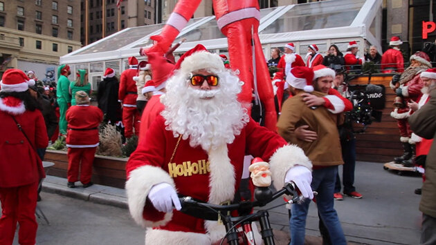 Эльфы, Гринчи, Санта-Клаусы и другие рождественские персонажи — на ежегодном фестивале "СантаКон" в Нью-Йорке.