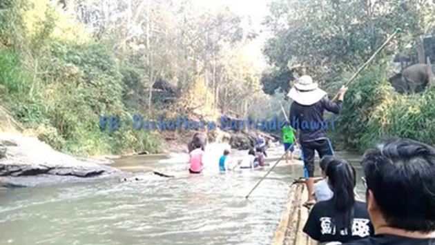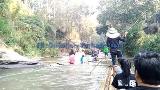 В Таиланде слон напал на туристов, сплавлявшихся по реке на плотах. На видео происшествия обратил внимание информационный портал Coconuts. Ролик снял 38-летний водитель фургона Дечаторн Састрадечават (Dechathorn Sastradechawat) в провинции Чиангмай на севере страны. Мужчина объяснил, что несколько туристов из Бангкока попросили его устроить для них прогулку на плотах по реке и сделать несколько фотографий. Группа туристов сплавлялась по реке, когда на них неожиданно напал слон, стоявший возле берега. Животное побежало к туристам и ударило один из плотов, из-за чего все сидевшие на нем люди упали в воду в разные стороны. Они в панике выбежали на берег, погонщику слона удалось поймать животное только через некоторое время. «Мы были на волосок от смерти», — заявил Састрадечават. Одна из туристок так сильно ударилась ногой о камень, что не могла ею двигать. Женщину немедленно доставили в больницу. Хозяин слона отметил, что животное, вероятно, хотело поиграть с туристами. По словам мужчины, шестилетний слон очень умный и никогда до этого не проявлял агрессии к людям. Он извинился перед туристами и оплатил все больничные счета. Глава местного туристического ведомства Кессарин Тункау (Kessarin Toonkaew) отметила, что шумное поведение туристов могло испугать животное. Она приказала установить вдоль реки знаки с требованием не издавать громких звуков, чтобы не раздражать слонов, живущих на десяти близлежащих фермах.