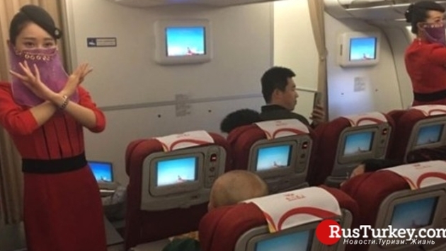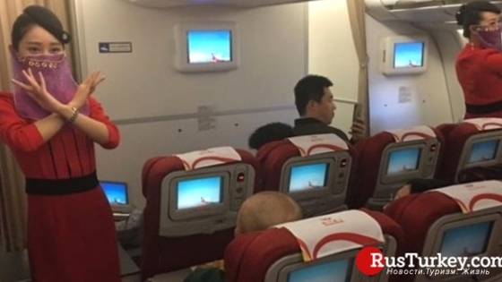Китайские стюардессы танцуют на турецком рейсе