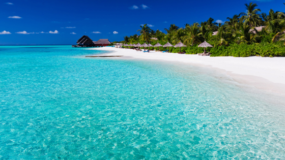 На настоящих Мальдивах бирюзовый цвет воды вызван сочетанием чистой океанской воды и белого песчаного дна, от которого отражаются солнечные лучи.