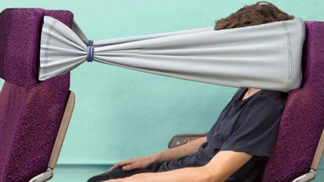 3. Устройство b-tourist band предоставляет пассажирам личное пространство, чтобы поспать во время перелета. Эта эластичная резинка имеет два пластмассовых кольца, с помощью которых можно отрегулировать ширину ленты с обеих сторон, чтобы отгородиться от остальных пассажиров полностью или только с одной стороны, а также поддерживает голову во время сна. Правда, подходит она не ко всем типам пассажирских сидений. (designboom.com)