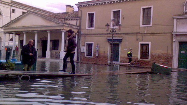 Как отмечается, в Венеции происходит одно из крупнейших в истории города наводнений. Вечером 12 ноября вода в городе поднялась на высоту 187 см - это второй исторический рекорд для города. Рекордная высота была зафиксирована в 1966 г., когда вода поднялась на 194 см.