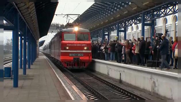 На видео попала крымчанка, которая буквально влюбилась в поезд «Таврия», впервые прошедший по Крымскому мосту. Состав прибыл в Севастополь из Санкт-Петербурга, открыв железнодорожное сообщение с Крымом по новому пути. Женщина, живущая в Севастополе почти 40 лет, расцеловала стенку вагона, составив из отпечатков губ слово «Ура».