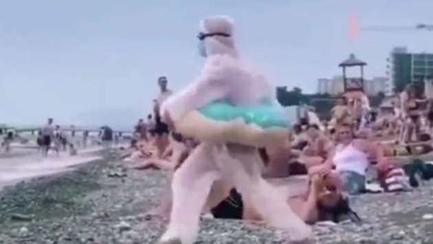 Остается только догадываться - что именно толкнуло россиянку на заплыв в защитной экипировке. И пока некоторые отдыхающие с недовольной миной на лице то снимали, то одевали медицинские маски для создания видимости соблюдения карантинных мер, дама в розовом купальнике решила зажечь на сочинском пляже в полном антикоронавирусном обмундировании. Ролик с веселой туристкой появился в сообществе "Любимый Сочи" и сразу же стал популярен среди пользователей. Судя по всему, отдыхающая решила немного потроллить ситуацию, которая сейчас складывается в популярном курортном городе. После отмены части ограничений, Черноморское побережье оказалось просто наводнено засидевшимися дома россиянами, которые в буквльном смысле заняли все прибрежные пляжи и гостиницы. В этой ситуации призыв властей о соблюдении социальной дистанции показался многим туристам немного странным.