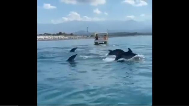Отдыхающим в Сочи туристам посчастливилось наблюдать в море настоящее представление устроенное дельфинами. Очевидцы сняли происходящее на видео, и поделились увиденным с пользователями соцсетей. На кадрах опубликованного видео видно, как среди людей, катающихся на катамаранах, резвится целая стая этих удивительных морских созданий, выполняя в воде настоящие цирковые трюки. Туристы пришли в полный восторг от этой приятной встречи. Об этом можно судить по восторженным возгласам и крикам, сопровождающим этот видеоролик. Ранее "Новая Кубань" сообщала, что в Темрюкском районе дельфины приплыли на мелководье к людям и устроили настоящее шоу.
