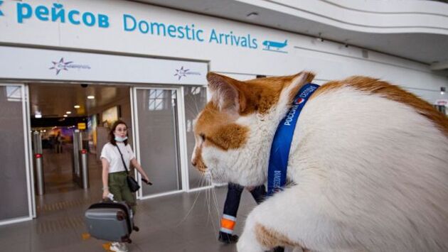 Кот Мостик встретил гостей Крыма в аэропорту Симферополя