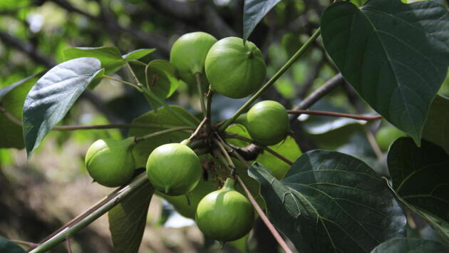Фото: пресс-служба Сочинского национального парка В сочинском Дендрарии туристов попросили не трогать ядовитые «яблоки» Внешне плоды напоминают яблоки или инжир. Тунг Форда представляет собой листопадное дерево из семейства молочайных. Оно растет в Китае и Северном Вьетнаме. Его культивируют в странах тропической Азии, Африки, Южной Америки, Австралии. В России тунг появился в 1897 году. Его привез ботаник А. Н. Краснов. В советское время его выращивали в Сочи, а также в Грузии и Абхазии. Плоды тунга токсичны. Внутри мясистой мякоти есть семена с белой маслянистой сердцевиной. Из них добывают масло. Оно имеет неприятный запах. При этом масло сильно ядовито и при попадании на кожу вызывает ожоги. В промышленности из него получают прочные лаки и эмали, которые быстро высыхают. Тунговые деревья можно встретить в верхней части Дендрария, недалеко от садов непрерывного цветения и птиц. Возле растений установили предупреждающие таблички. Администрация Сочинского национального парка просит туристов любоваться деревом издалека, так как практически все его части представляют опасность для здоровья. В парке также запрещен сбор и других растений. Нельзя пробовать на вкус ягоды и даже листья, сообщили в пресс-службе нацпарка.