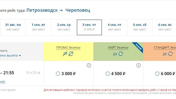 Авиаперевозчик «Северсталь» готовится к осеннему сезону. С сентября компания возобновит регулярные рейсы по маршруту Череповец - Петрозаводск - Архангельск. Об этом сообщает официальный паблик «Северстали» «ВКонтакте». Самолеты будут летать раз в неделю – по четвергам, время в пути – чуть меньше часа. Первый рейс состоится 3 сентября. Билеты уже можно забронировать. Вылет в Архангельск – в 17:40. Билетов класса «Промо эконом» уже нет на сайте, самый дешевый вариант – «Лайт Эконом» за 5 500 рублей. Вылет в Череповец – в 21:00. Доступны билеты «Промо Эконом» за 3 000 рублей, «Лайт Эконом» обойдется в 4500, а «Стандарт Эконом» – в 6 000 рублей. Как мы писали ранее, 20 августа в Петрозаводске открылся новый аэровокзальный комплекс, способный принимать и отправлять до 300 пассажиров в час. В тот же день комплекс начал принимать первых пассажиров. Три пассажира, первыми прошедшие регистрацию на сегодняшний рейс на Симферополь, получили призы – сертификаты на бесплатное использование VIP-зала аэровокзального комплекса. Также персонал нового аэровокзала обслужил еще один рейс, приняв самолет, прилетевший из Сочи.