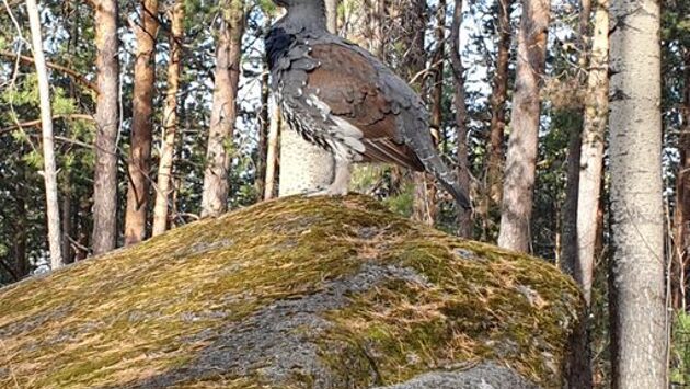 Туристы встретили взрослого глухаря у Первого Столба в нацпарке. В четверг, 22 октября, в течение нескольких часов птица разгуливала по полянам, сидела на перилах деревянной лестницы и камнях. Глухарь ведет себя мирно и терпеливо позирует для фото и видео туристов.