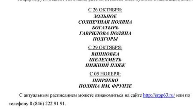 С 26 октября прекращают работу остановочные пункты Зольное, Солнечная поляна, Богатырь, Гаврилова поляна, Подгоры.