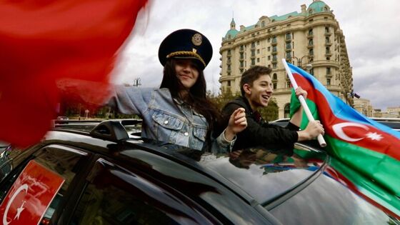Жители Азербайджана тоже сегодня не спали. Целый день они гуляют по городам, танцуют, поют песни и празднуют окончание боевых действий.