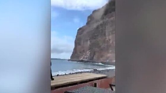 На записи изображен пляж Аргага на популярном испанском курорте Валле-Гран-Рей на острове Ла Гомера, на котором находятся несколько человек, рядом с ними бегает собака. В какой-то момент в нескольких метрах от них начинает разрушаться высокая скала, и фрагмент глыбы падает в воду, поднимая высокий столб пыли.