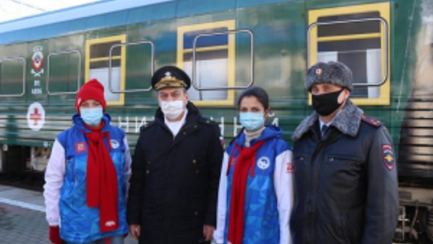 К перрону железнодорожного вокзала города-героя Новороссийска прибыл «Поезд Победы». Маршрут поезда проходит по городам, участвующим в патриотической акции «Дорогами Победы». Передвижной музей с иммерсивной инсталляцией посвящен 75-летию Победы в Великой Отечественной войне. В торжественной встрече поезда приняли участие руководство и личный состав УМВД России по городу Новороссийску, представители городской и краевой администрации, военнослужащие Новороссийского гарнизона. В сопровождении участников общественного движения «Волонтеры Победы» гости посетили демонстрационные вагоны поезда. В формате аудиовизуальной экскурсии ознакомились с экспонатами, точно передающими атмосферу военных лет. Музей «Поезд Победы» — уникальная передвижная историко-художественная экспозиция, которая включает в себя 50 видеопроекторов, 18 видеостен и 12 тач-столов. Подобный проект дает возможность узнать более детально о подвигах времен Великой Отечественной войны.