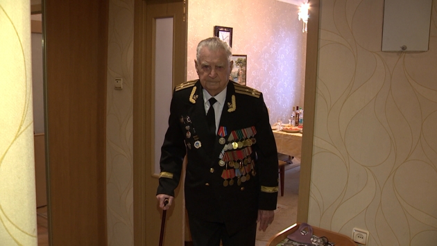 Капитан первого ранга Михаил Егоров встречает гостей при полном параде. Несмотря на почтенный возраст, стойко выдерживает многочисленные поздравления с 99-летием. Сегодня даже адмиралы перед ветераном берут под козырёк.