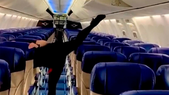Неизвестная стюардесса выполнила акробатический трюк в процессе работы на борту самолета. Произошедшее попало на видео, запись была опубликована в Instagram-аккаунте @flight__love, освещающем жизнь членов экипажа по всему миру.