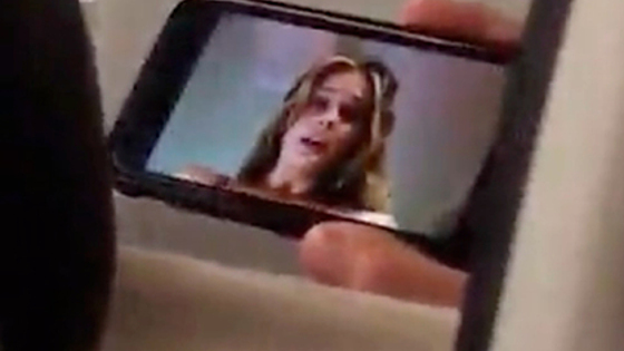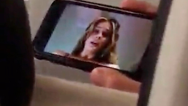 На записи видно, как впереди сидящий пассажир держит в руках телефон с изображением обнаженной девушки, которая сидит на мужчине. «Воу, воу, воу! У-ля-ля», — произносит голос за кадром.