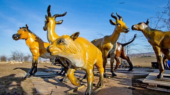 В Крым доставлены первые девять скульптур доисторических животных, кости которых были найдены в пещере "Таврида". Это бизон с теленком, семья лошадей из трех особей, саблезубый тигренок, пещерная гиена и две антилопы в натуральную величину. Об этом сообщила пресс-служба КФУ.