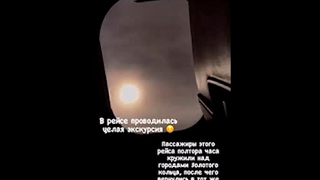 На следующей сториз съемку ведет сама стюардесса и показывает иллюминатор самолета, а за кадром слышно объявление пилота. «В рейсе проводилась целая экскурсия. Пассажиры этого рейса полтора часа кружили над городами Золотого кольца, после чего вернулись в аэропорт, из которого вылетали», — говорится в подписи.