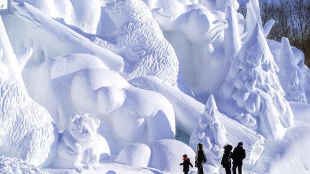 Иногда оформители не ограничиваются отдельными зданиями и создают к Новому году и Рождеству тематические города. Например, в китайском Харбине ежегодно проводится крупнейший в мире «Фестиваль льда и снега»: на площади в 60 га на три месяца вырастает настоящее ледяное царство. На установку десятков гигантских ледяных скульптур тратят больше двух недель. Главными достопримечательностями композиции в разные годы становились 40-метровый небоскреб, сложенный из 200-килограммовых ледяных блоков (что неудивительно, ведь Китай – мировой лидер по числу небоскребов), римский Колизей, снежная статуя Будды и другие удивительные объекты. Кстати, во время фестиваля проходит международный конкурс на лучшую ледяную скульптуру. И в прошлом году первое место на нем заняла команда из России: скульпторы-любители из Благовещенска покорили жюри фигурой под названием «Футбольный форвард».