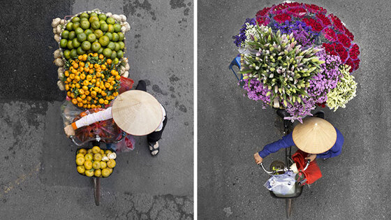 Лоэс Хиринк — фотограф из Нидерландов, сейчас живет во Вьетнаме. Она была очарована жизнью местных уличных торговцев в столице страны Ханой. Но проблема была в том, что Лоэс никак не могла найти удачный ракурс, чтобы изобразить героев своих работ так, как видела их она, — яркими образами в постоянном движении. К ее удивлению, решение проблемы ждало ее на одном из многочисленных мостов города.