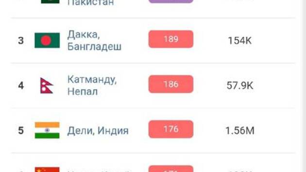 В первую «десятку», помимо сибирского города, вошли города Индии, Китая, Бангладеш, а также столица Украины Киев.