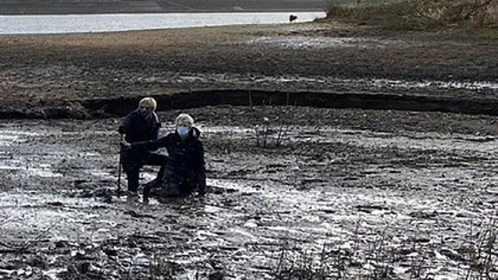 В среду, 17 февраля, представитель спасательной службы графства Большой Манчестер Карл Хаслем (Carl Haslam) опубликовал в Twitter фотографии, на которых видны две женщины, которые по колено стоят в грязи на берегу реки. Очевидно, они гуляли вдоль водоема и застряли.
